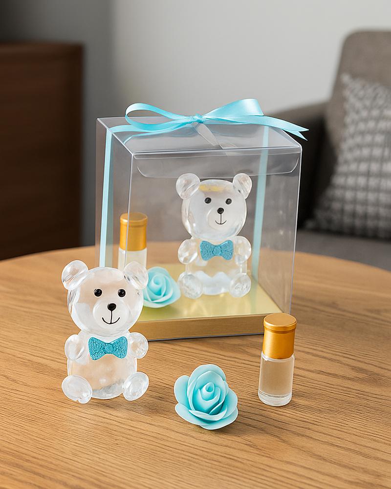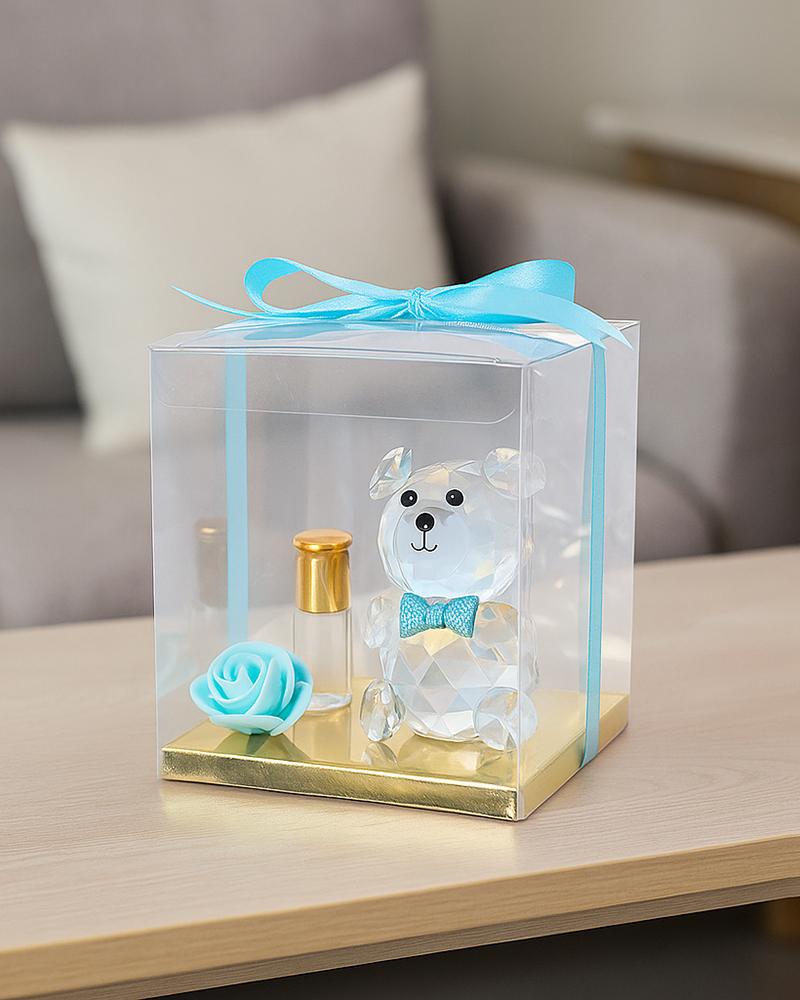 توزيعات مولود مجسم كريستال مع ربع توله عطر ورده