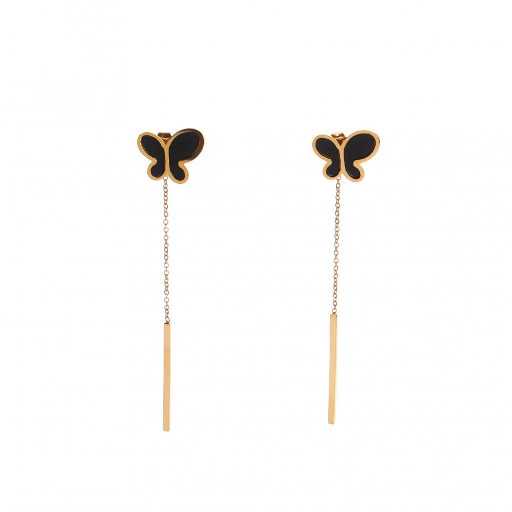 صُمم هذا الحلق ببساطة وأناقة على شكل فراشة تتدلى منها سلسلة رفيعة تعطي منظراً جذاباً تتوفر بعدة ألوان.