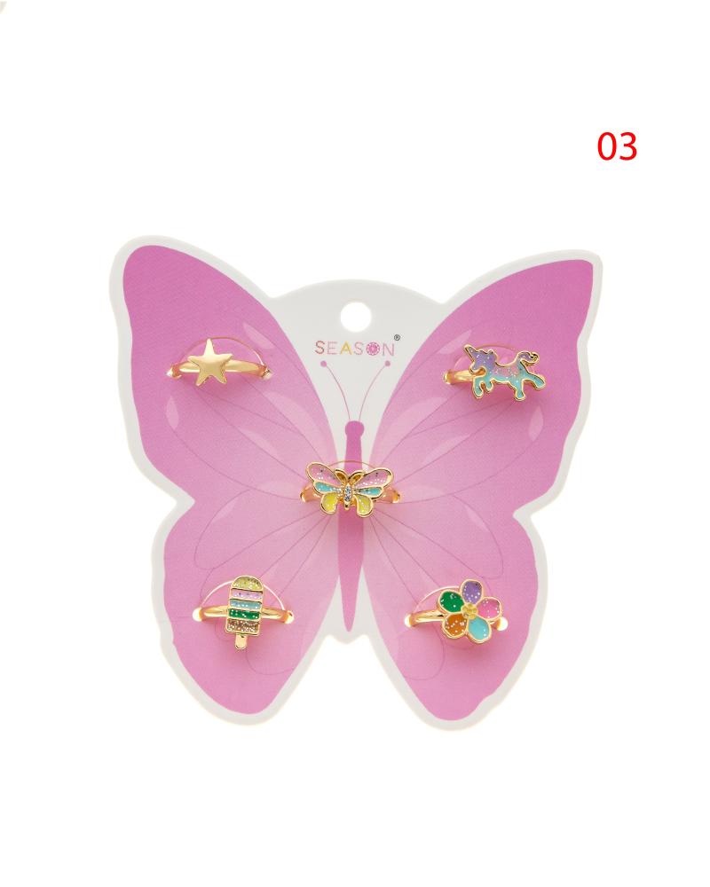 كل خاتم في المجموعة يتميز بتصميم لطيف مستوحى من عالم الطفولة مثل الورود، القلوب، الفراشات، أو شخصيات محببة، بخامات آمنة وخفيفة على اليدين الصغيرة.