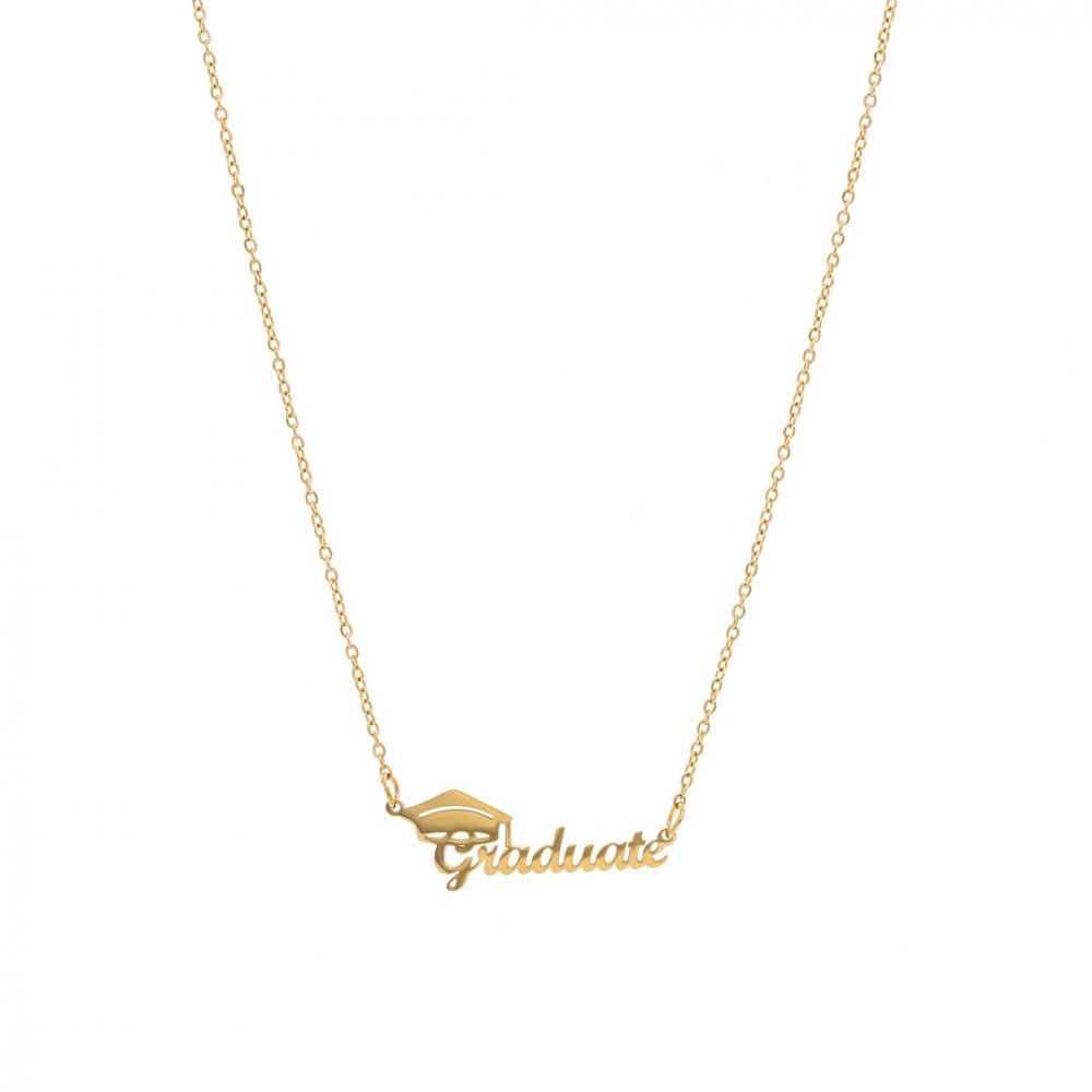 تأتي القطعة بتصميم تخرج مزينة بشكل رائع مع سلسلة ذهبية.