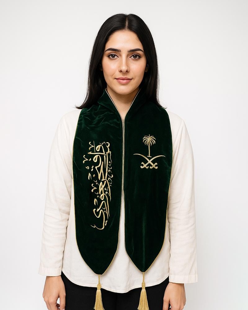 هذا الشال مصمم خصيصًا بأشكال مستوحاة من الهوية الوطنية التي تعبر عن حب الوطن.