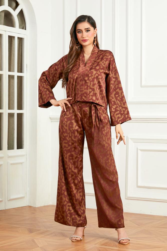 - بنطلون طويل بفتحة أمامية بسحاب: تصميم جريء وعصري يسمح بالتحكم في مقدار الفتحة، مما يضفي لمسة فريدة ويضمن سهولة الحركة.