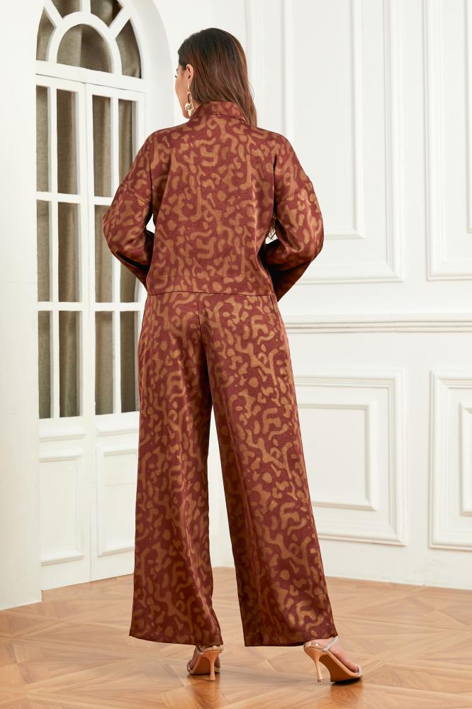 طقم نسائي عصري: سترة بأكمام طويلة وتصميم جيوب مع بنطلون طويل
