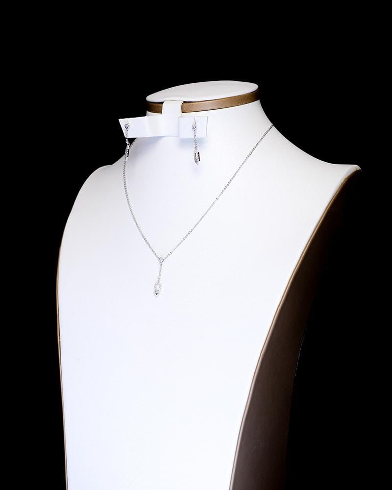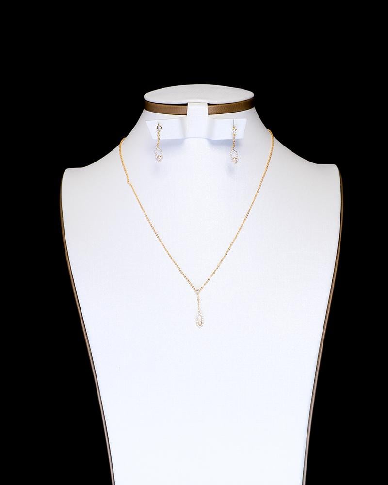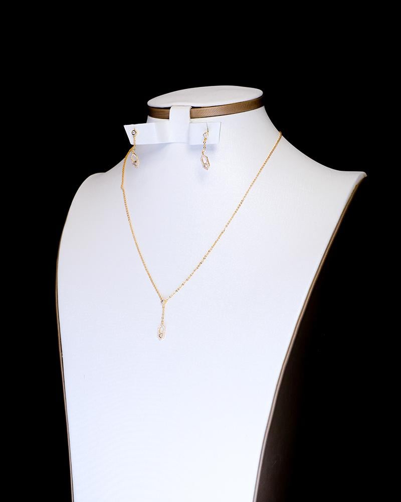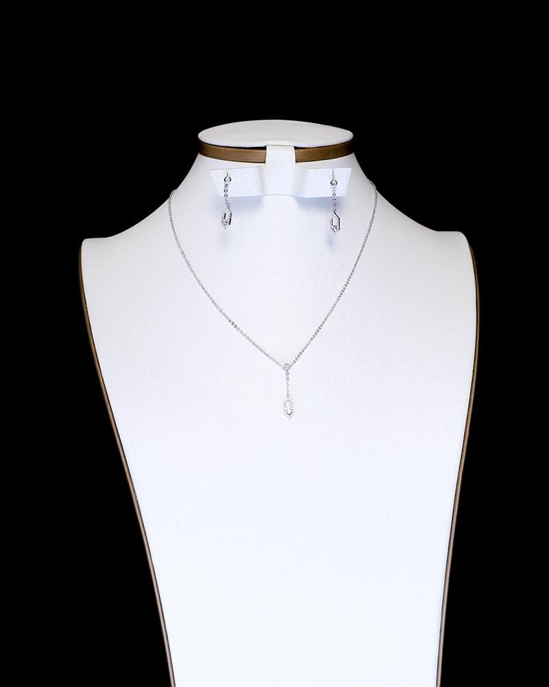 يشمل الطقم : سلسال أنيق، حلق ، جميعها مرصعة بأحجار الزركون البراقة باعلى جودة ، بتثبيت متقن ولمعان يخطف الأنظار.