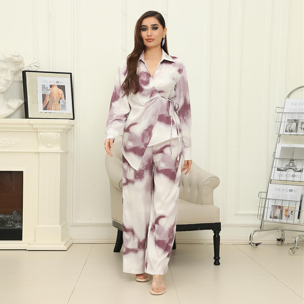 طقم نسائي عصري: سترة بأكمام طويلة وتصميم جيوب مع بنطلون طويل