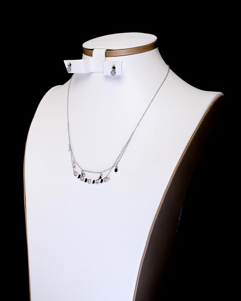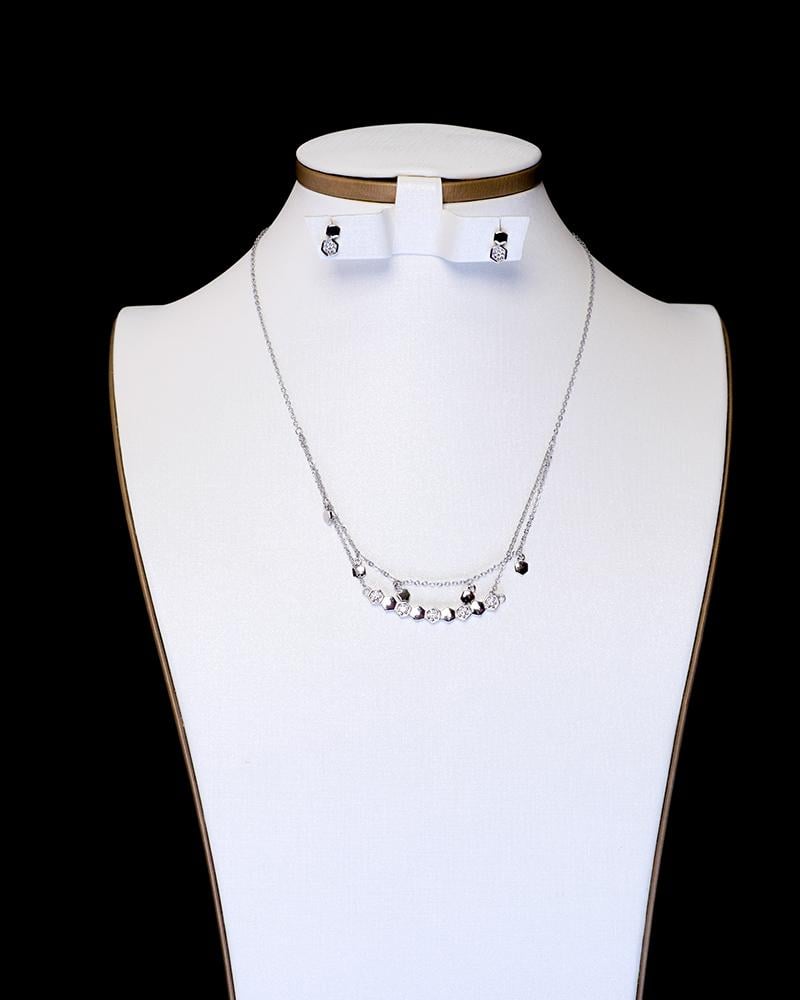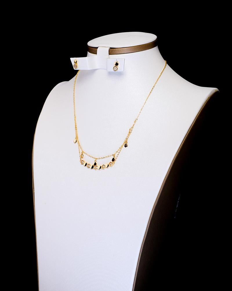 يشمل الطقم : سلسال أنيق، حلق ، جميعها مرصعة بأحجار الزركون البراقة باعلى جودة ، بتثبيت متقن ولمعان يخطف الأنظار.