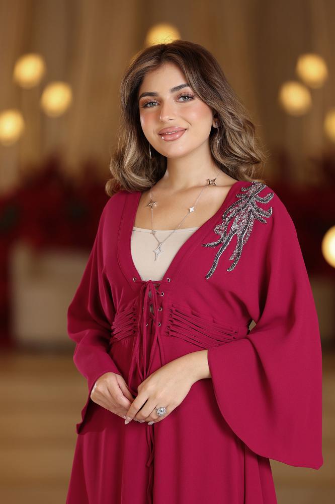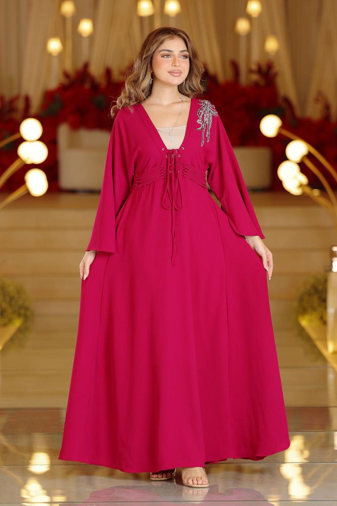 • أكمام طويلة : تضفي شكلًا فريدًا على الأكمام، مما يعزز من الأناقة ويجعل الفستان مميزًا.