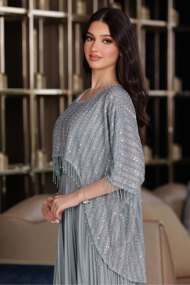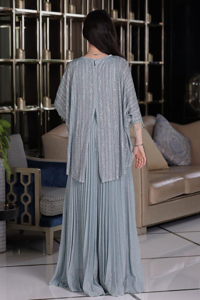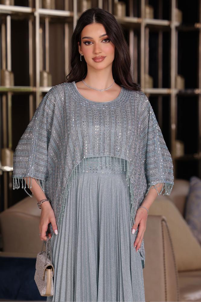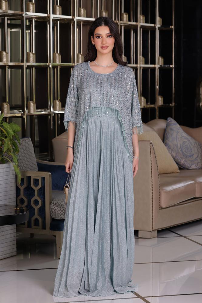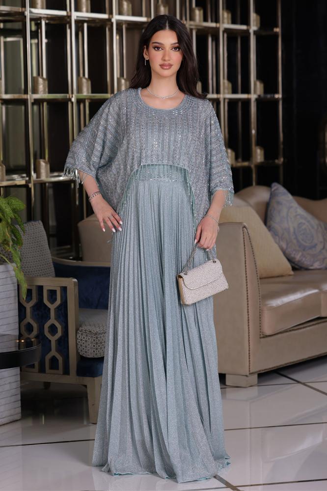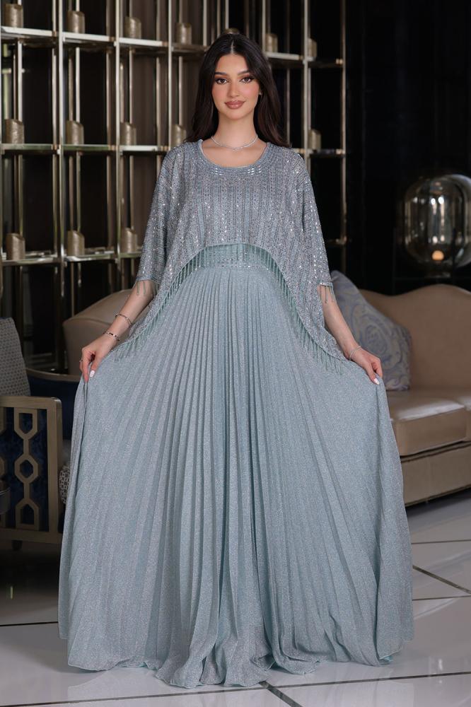 فستان سهرة ناعم بليسيه بهدب – بتفاصيل انيقة وجذابه