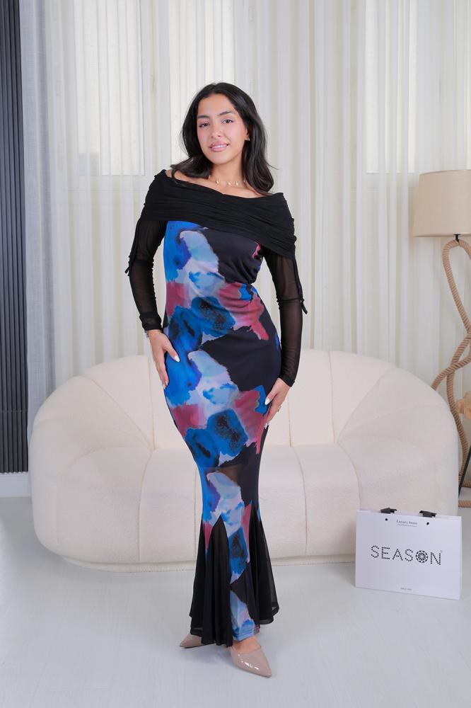 - تصميم كتف مكشوف (أوف شولدر): يبرز جمال الكتفين والرقبة بأسلوب أنثوي ورقيق، مع إضفاء لمسة عصرية على الفستان.