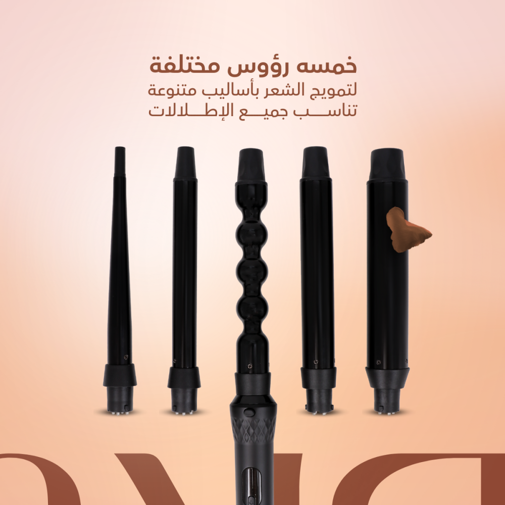 - خمسة روؤس مختلفة لتمويج الشعر تناسب جميع الاطلالات .
