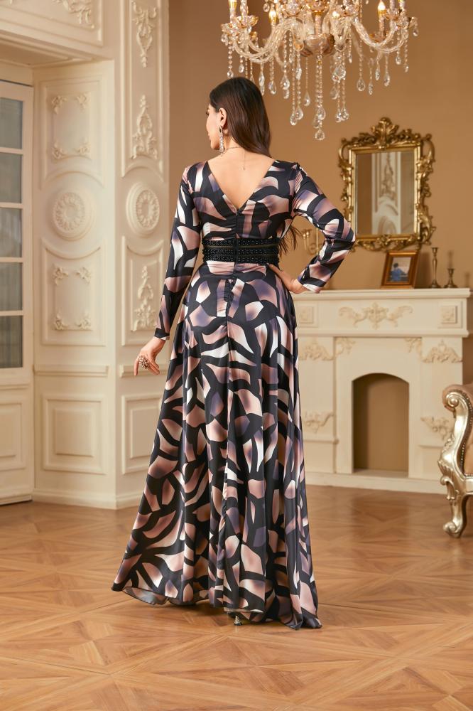 - خصر محدد بحزام عريض: يساعد على إبراز جمال الخصر ومنح الفستان قصة انسيابية وجذابة تحدد القوام.