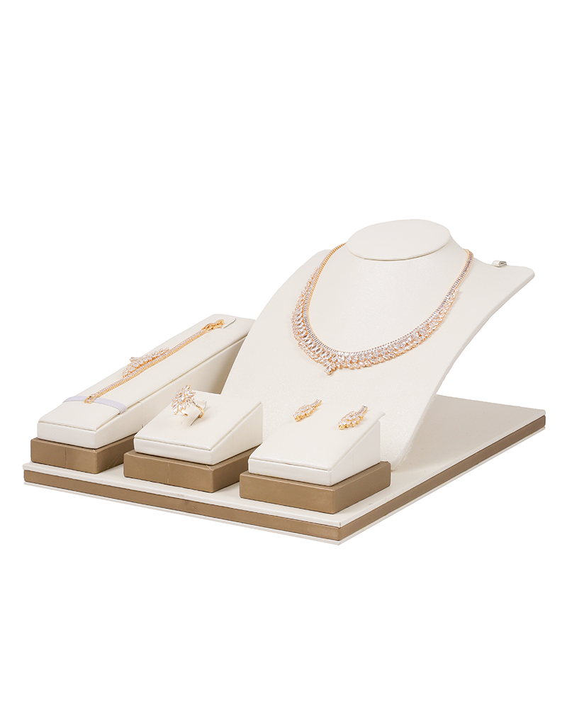 تميّزي بإطلالة تخطف الأنظار مع طقم الزركون الفاخر المصمم بعناية ليجمع بين النعومة والفخامة في كل تفاصيله . الطقم يشمل سلسال أنيق، حلق ، اسوارة ، وخاتم ، مزينين بأحجار الزركون عالية الجودة بتثبيت دقيق ولمعة ساحرة.